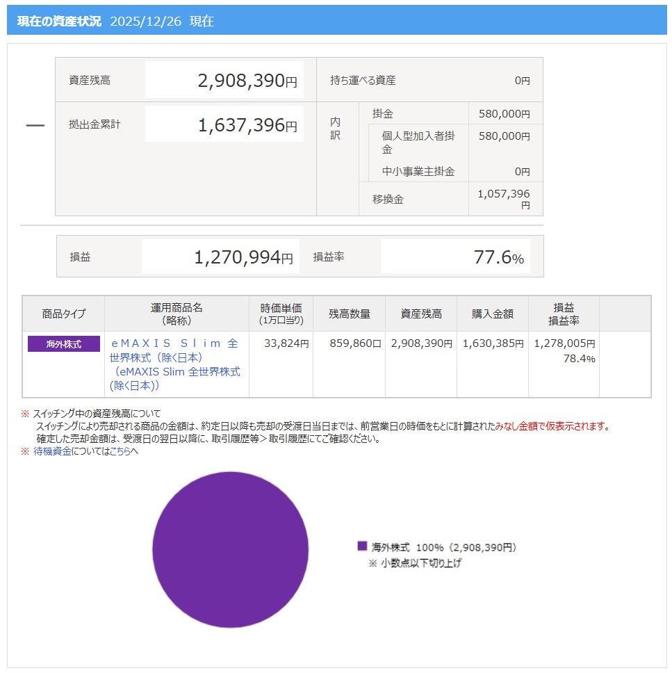 個人型確定拠出年金(iDeCo)(2025年12月)│8年6ヶ月経過 損益率77.6%